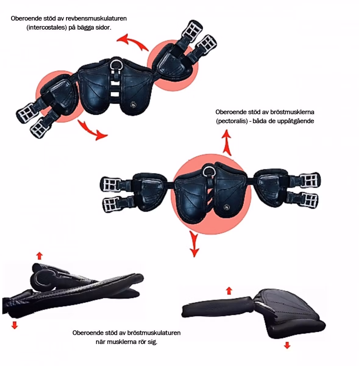 Den är konstruerad så att varje enkel del på gjorden arbetar samman med de specifika muskelgrupperna på hästen bröstkorg. Därmed hjälper man musklerna med att fungera optimalt!