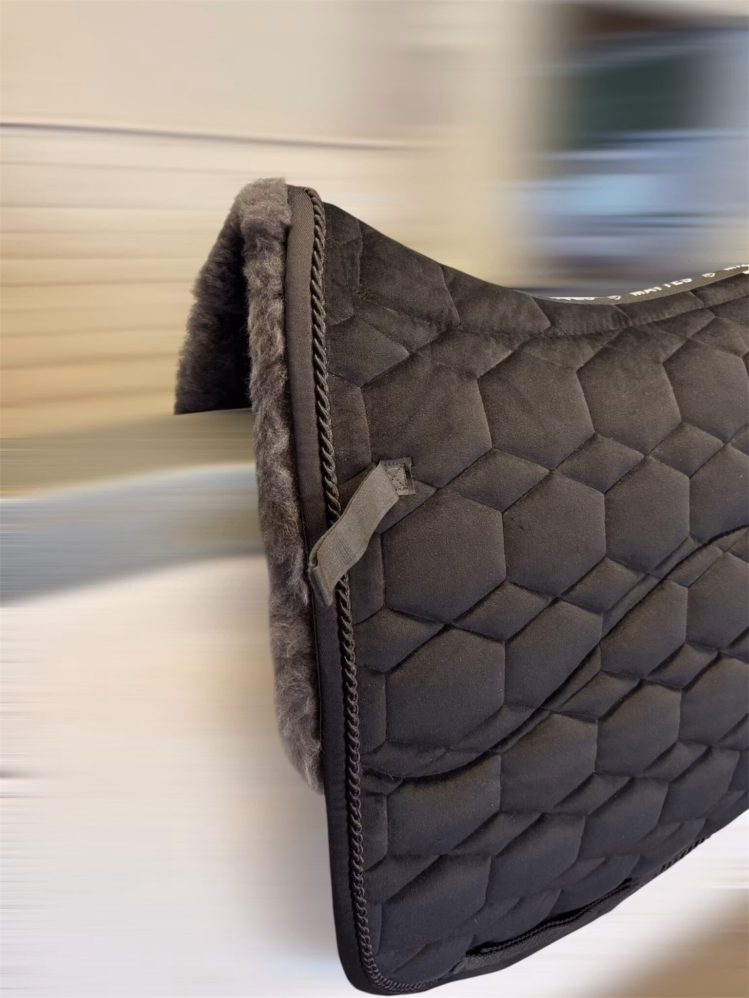 Fårskinn mot ryggen.